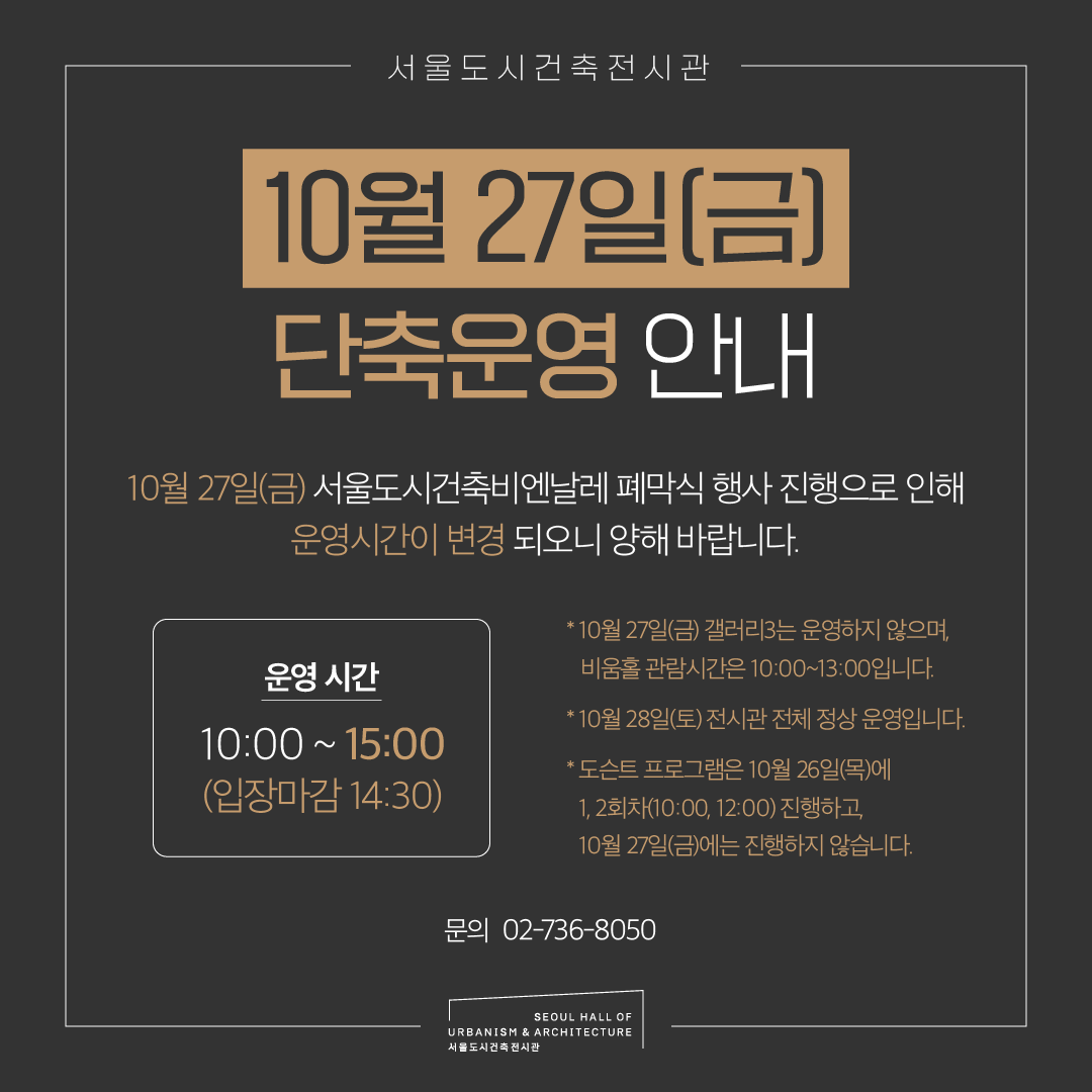 10월 27일(금) 서울도시건축비엔날레 폐막식 행사 진행으로 인해