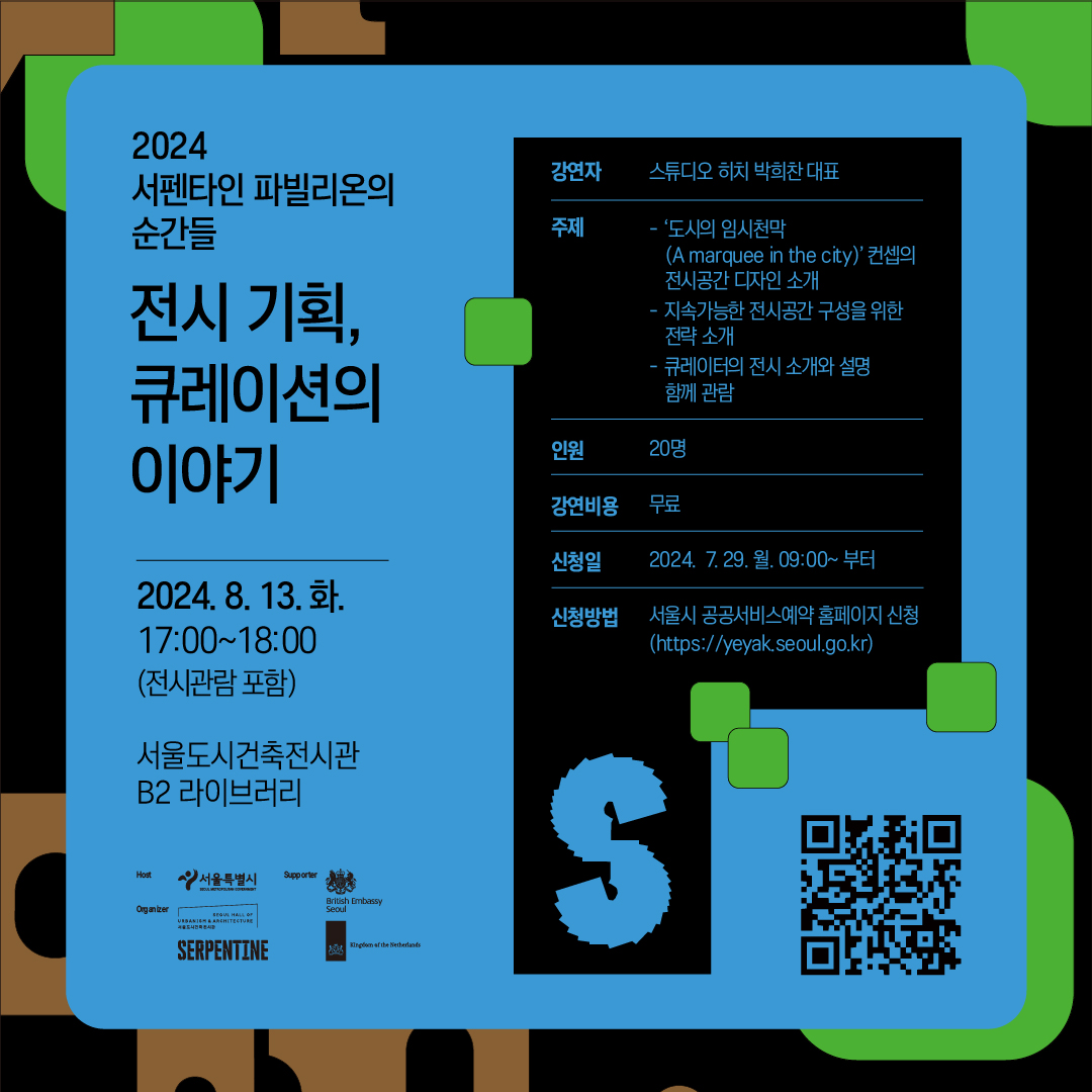 - 강연주제 : 2024 서펜타인 파빌리온의 순간들 전시 기획, 큐레이션의 이야기